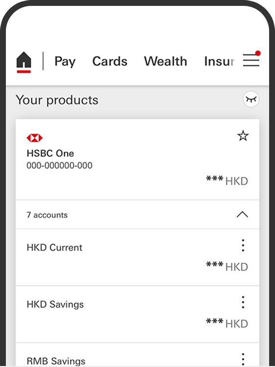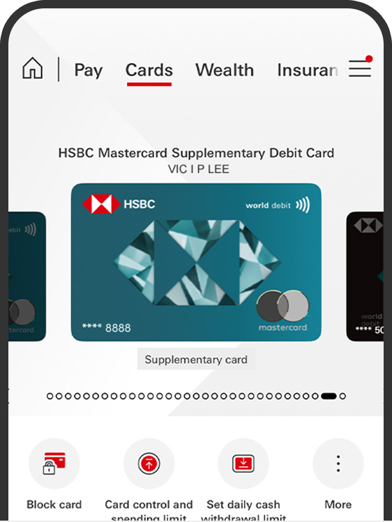 Already an integrated account holder? Apply for a debit card in the HSBC HK App and we’ll process your application right away. Simply log on, select the menu icon and choose 'Products', then go to 'Cards and instalments'.