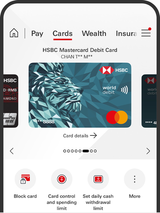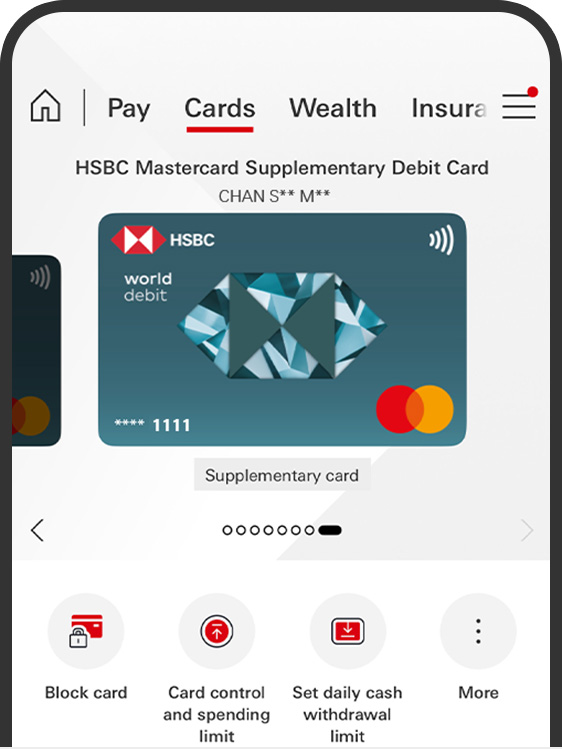 Already an integrated account holder? Apply for a debit card in the HSBC HK App and we’ll process your application right away. Simply log on, select the menu icon and choose 'Products', then go to 'Cards and instalments'.