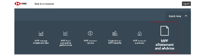 If you have already registered for the MPF Member Benefit eStatement service, then all you have to do is log on to the HSBC Online Banking, select ‘Insurance, MPF & ORSO’ on the homepage and then select ‘MPF overview'.