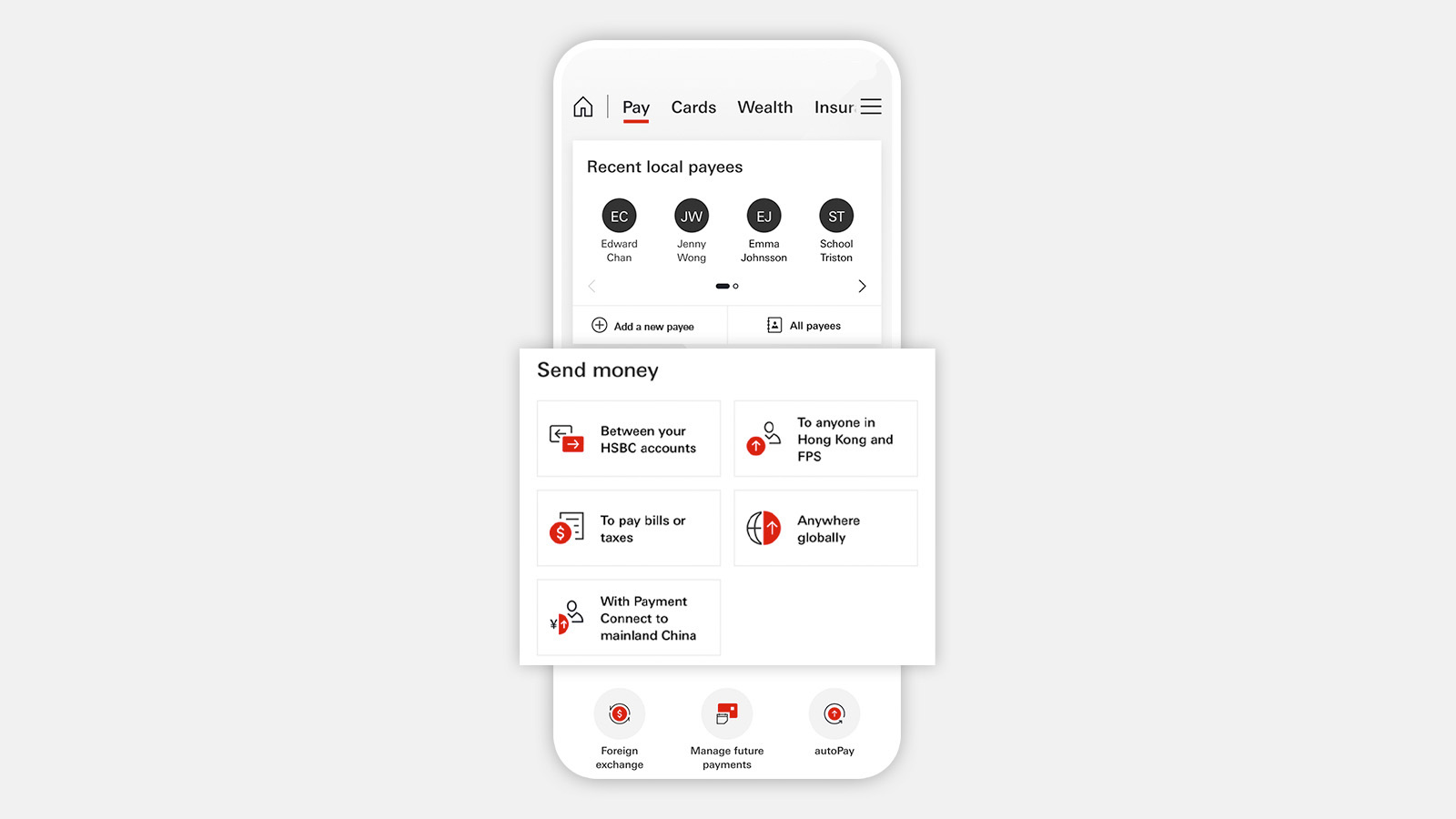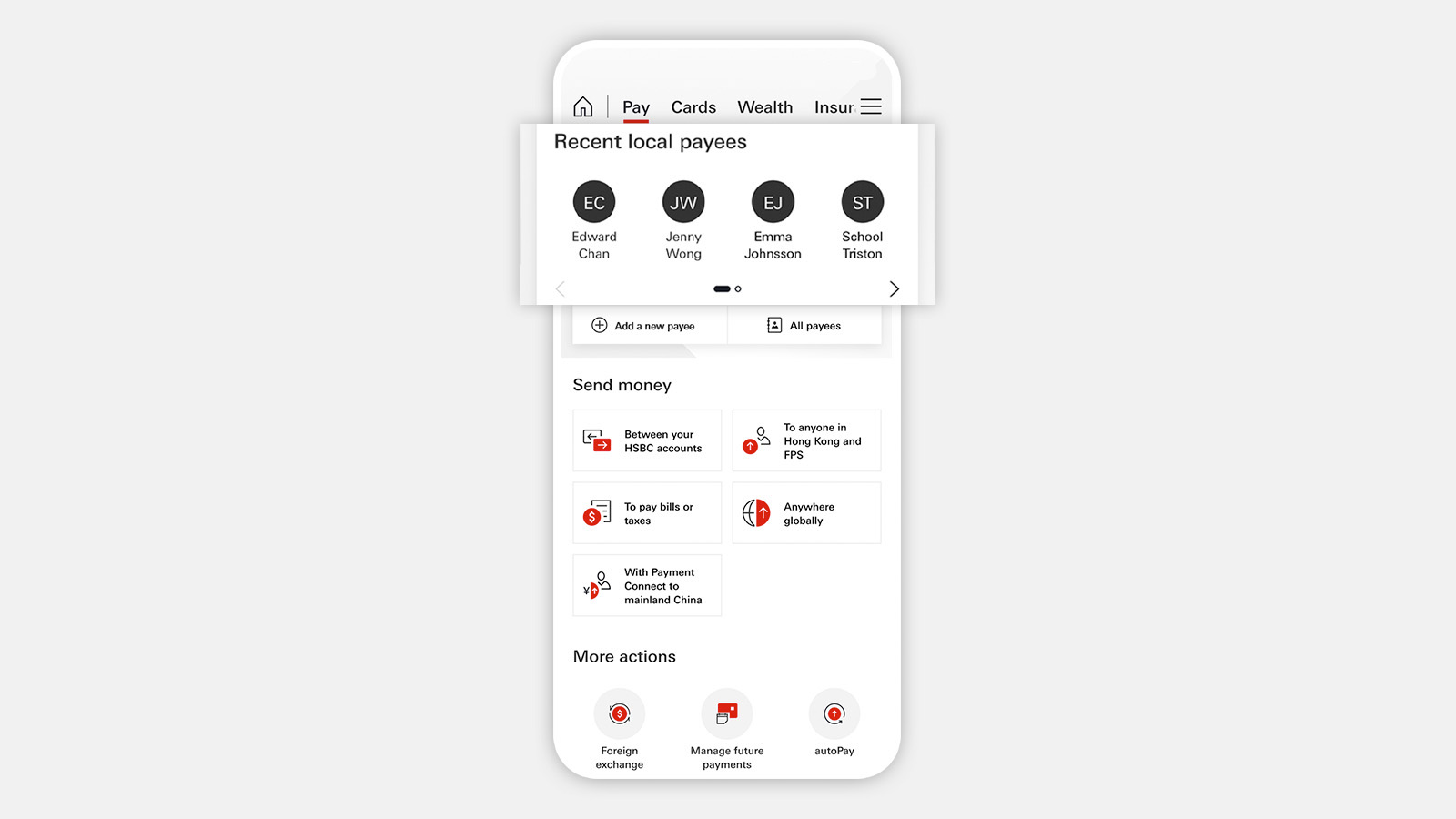 You can now make payments and transfers even more easily on the HSBC HK App. We've redesigned the 'Pay' tab so you can find the features you need more easily. Get the app today and enjoy a more convenient way to bank on the go.