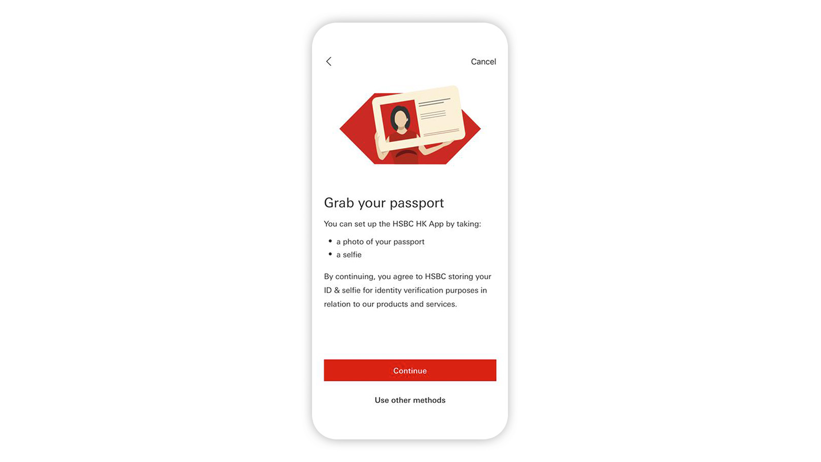 You can set up the HSBC HK App simply with your valid HKID or supported passport and a selfie. Please follow these tips to proceed.
