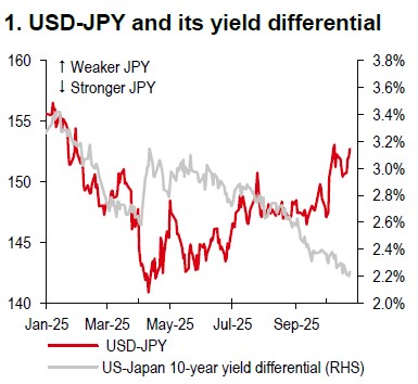 • But downward pressure on the JPY may ease with cautious fiscal expansion and potential shifts in BoJ.