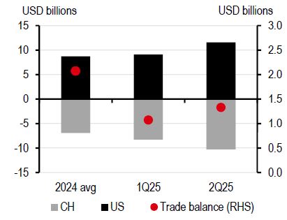 All things considered, we forecast GDP growth of 6.6% for 2025 and 5.8% for 2026. This does not only account for the significant 2Q upside surprise, but also reflects a notably lower tariff rate than announced in April. However, uncertainties surrounding trade are far from over.