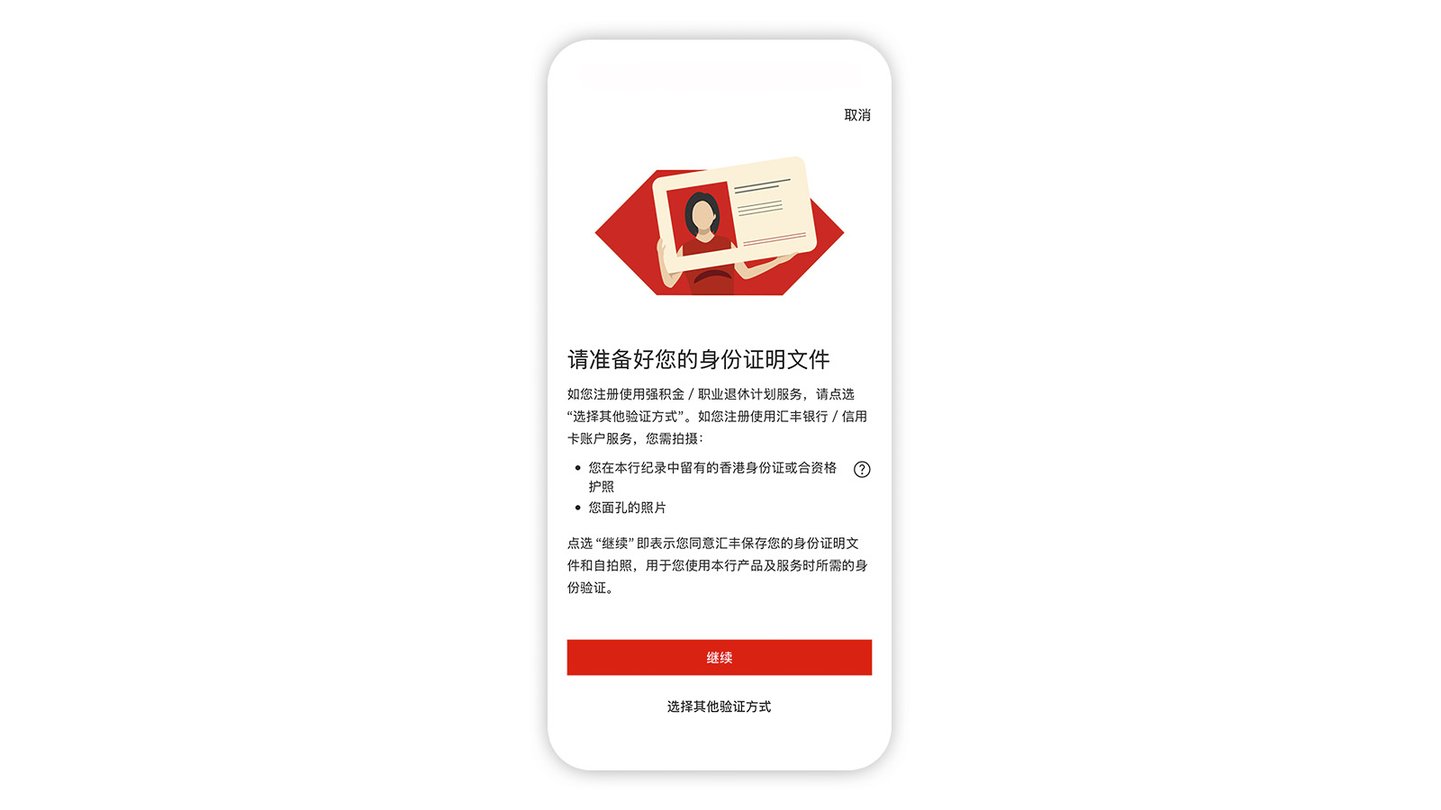 请注意,当您设置HSBC HK App后,您可能需要进一步验证身份以使用汇丰网上及流动理财的全部服务。