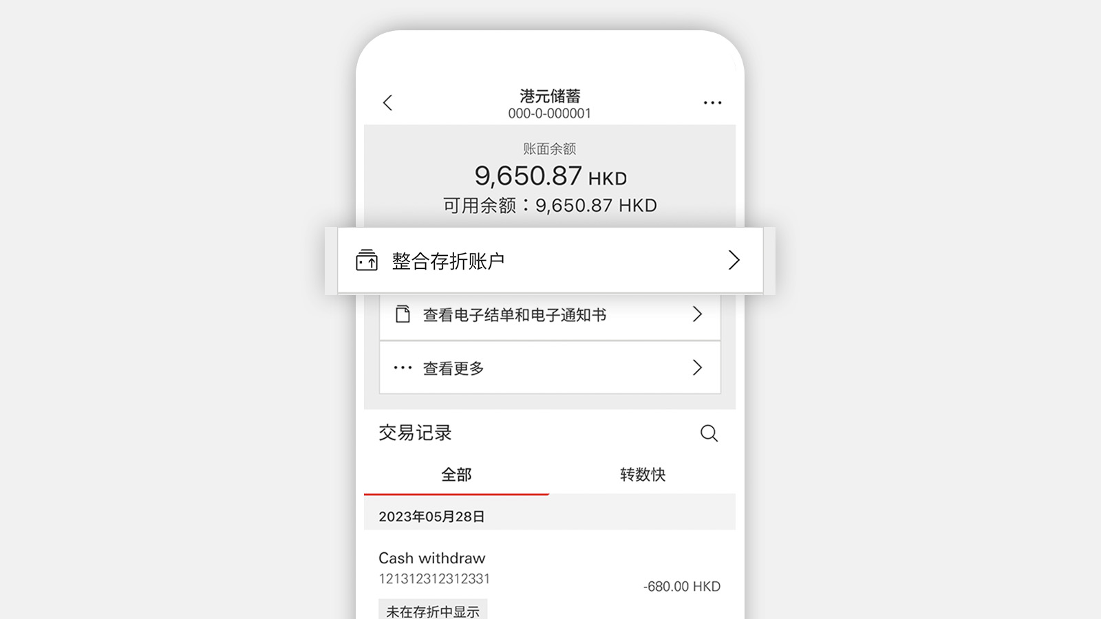 - 通过HSBC HK App,几下点按即可将存折储蓄账户整合到综合理财账户