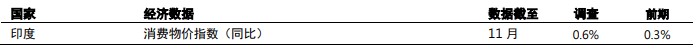 印度整体消费物价指数通胀可能从10月的低位回升,但11月仍保持0.7%(同比)的温和水平。
