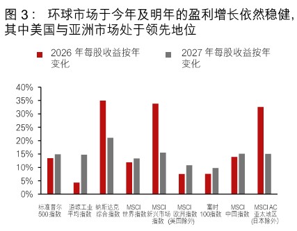 - 我们就中东局势在不同情境下对市场的潜在影响作出评估。倘若军事行动持续地影响多个国家,油价与金价或将被推高,并对欧洲经济体、新兴市场石油进口国及周期性板块构成压力;反之,如果局势有所缓和,这些市场则有望受益。虽然在局势降温的情况下金价可能会回落,但黄金作为避险资产,预计仍是资产配置中的重要分散风险工具。整体而言,各行各业及地区的盈利增长依然稳健,支持我们对市场的前景维持正面的看法。美国以外地区之中,目前亚洲的盈利预测上调情况最为显著。