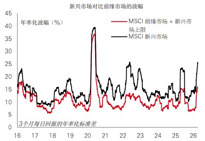新兴市场资产在伊朗冲突发生至今所展现的韧力受到了不少讨论。过去数年,新兴市场经济体经历了彻底变化(例如财政和对外平衡有改善,及政策框架改进),因此上述的讨论相当合理。但同样令人印象深刻的是前缘市场股票在期间的表现。其最大跌幅仅约8%,而新兴市场则达到13%。