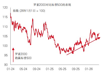 去年夏季以来,小型股持续跑赢大型股,此乃受到2026年将进一步减息的预期推动。因此,当市场上月重新调整预期至较鹰派的方向时,小型股会因而重挫是合理推论。但实际上,小型股在初期遭抛售后便迅速反弹。