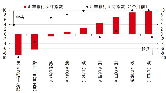 货币对(如美元兑日元)的战术观点:上涨(⬆)/下跌(⬇)/持平(➡)箭头显示,汇丰环球研究部预计,未来几周,货币对中的第一种货币相对于第二种货币将会升值/贬值/盘整。例如,欧元兑美元的上涨箭头意味着,未来几周欧元相对于美元将会升值。“目前”项下的箭头代表我们的最新观点,“此前”项下的箭头代表我们在上月报告中持有的观点。