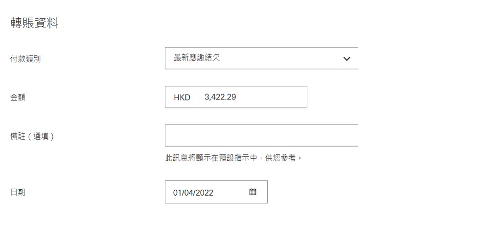 - 按需要選擇繳付信用卡結單結欠、最低付款金額或最新應繳結欠,您亦可選擇繳付指定金額