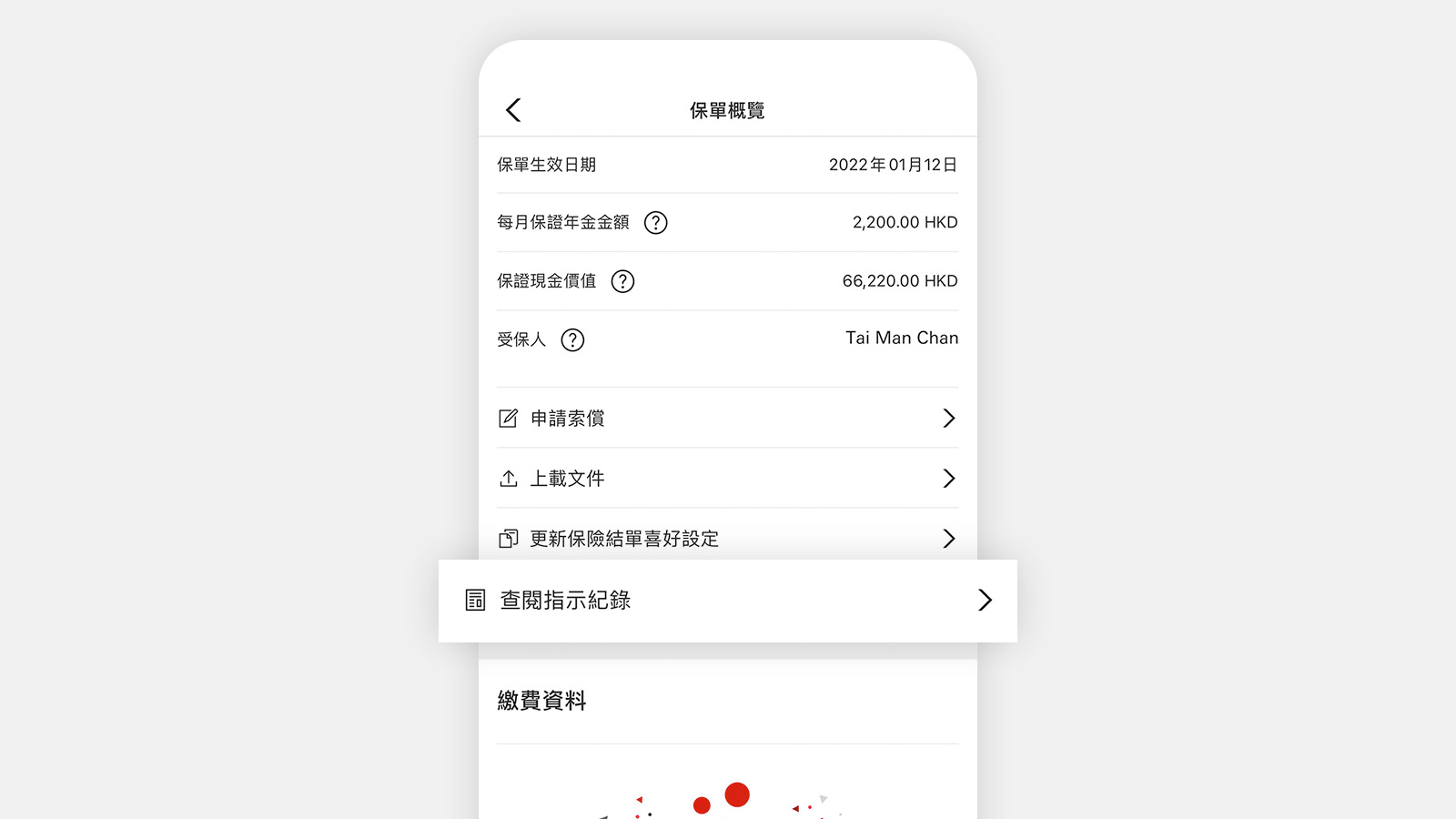 在保單概覽頁面點選「查閱指示紀錄」,以查看待處理指示及指示紀錄。