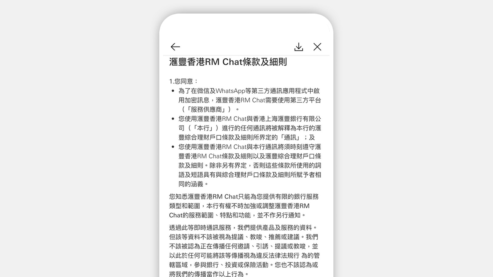 如要通過WhatsApp及微信與客戶經理對話,您必須要在手機的應用商店下載相關的應用程式,並於本行登記有效的手提電話號碼。