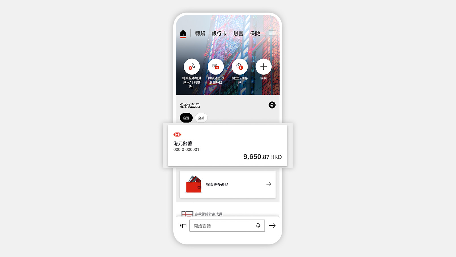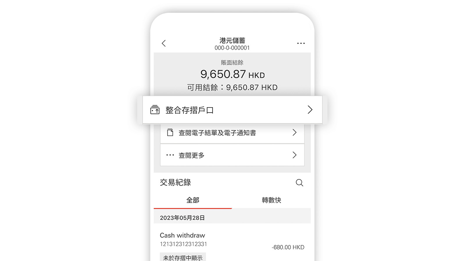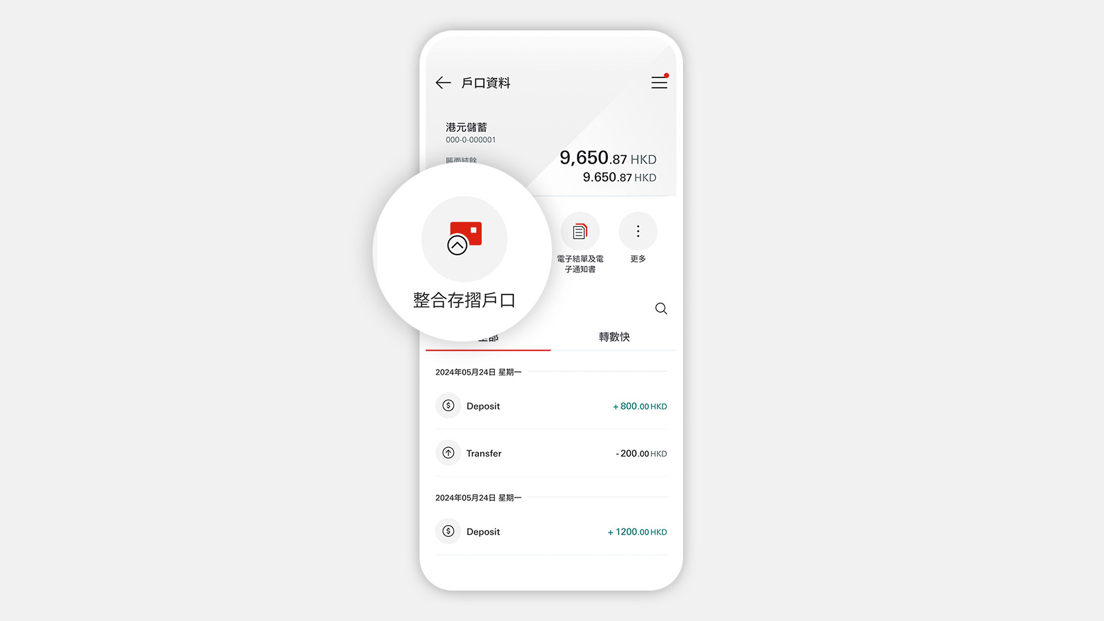 透過HSBC HK App,幾下點按即可整合您的存摺儲蓄戶口。