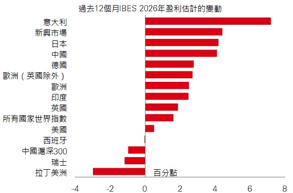 環球盈利情況更為複雜。印度和墨西哥等市場的2025年盈利預期穩定,但歐洲、拉丁美洲和中國的盈利預期大幅向下修正。這意味著該等表現良好的市場,其回報動力主要源自估值重估,而非盈利達標。