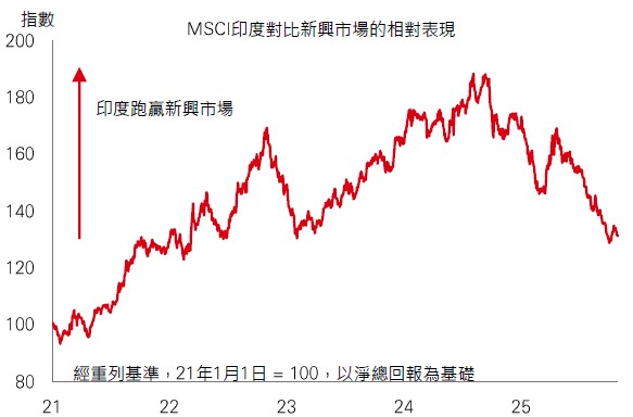 印度股市今年充滿挑戰。MSCI印度指數(以美元計)升4%,對比之下,新興市場指數急升34%。但重點是2025年的挑戰乃是出現在之前四年的大幅增長之後。股市長時間表現卓越後,出現短暫喘息並不令人意外。