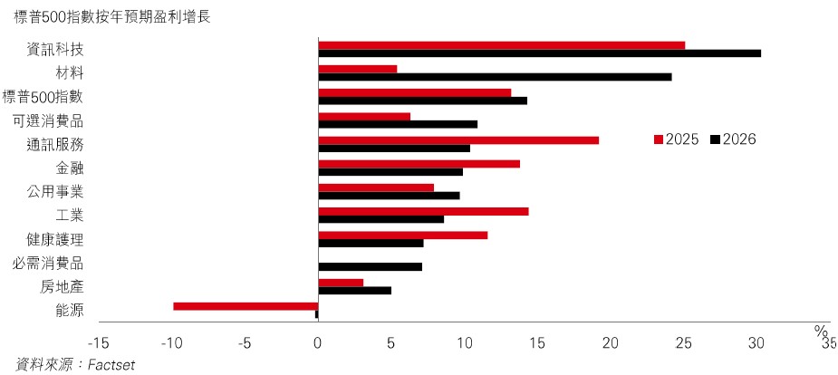 #2. 大型科技股和人工智能股在過去三年推動美國利潤和股價上漲,而兩者的表現漸見分歧。相關板塊繼續主導整體利潤,但投資者更為「挑剔」,一些股票在表現未及市場預期後急挫。同時有跡象顯示,人工智能或會打擊傳統軟件企業,加上人工智能股票存在估值過高、過度集中及泡沫隱憂的憂慮,鉅額資本開支投資何時才能帶來回報仍未見明朗。