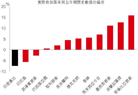 對固定收益資產而言,通脹下行壓力應會使實際息率繼續高企,增強印度政府債券於全球的吸引力。而對國際投資者而言,盧比估值偏低亦為外匯回報帶來空間。