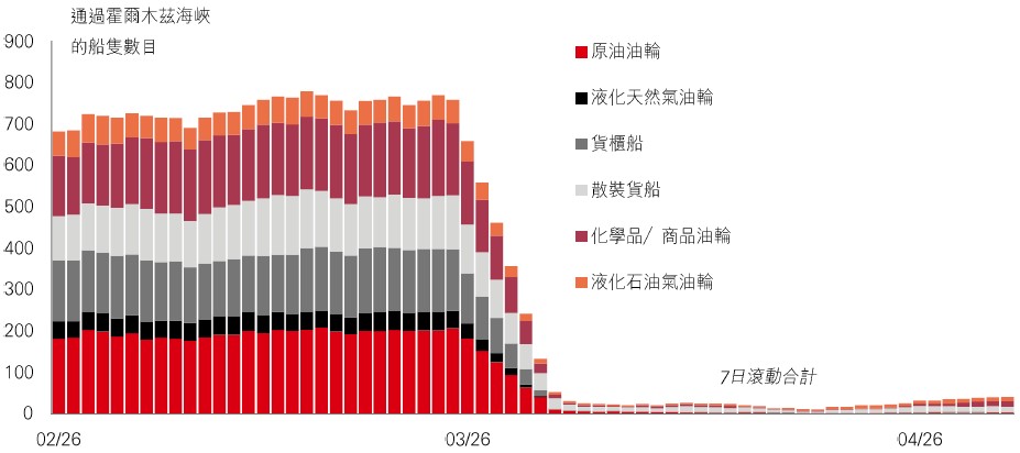 首先,重要宏觀變數在於霍爾木茲海峽船舶通行數目的增長速度。該海峽屬戰略要道,亦是影響未來發展的關鍵。倘若數據確認海峽逐步重開,且通行數目持續增加,即使與衝突有關的其他問題未解決,風險資產亦可能繼續向上。