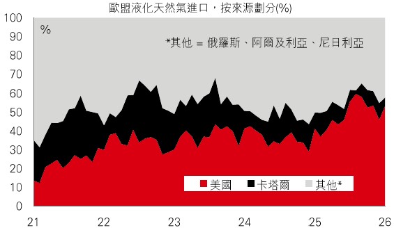 歐洲的液化天然氣結構亦有改變,目前大部分進口來自美國。此外,歐盟的儲存目標較2022年靈活,有助降低恐慌性搶購和價格進一步急升的風險(尤其是在現時的惡劣情況之下)。